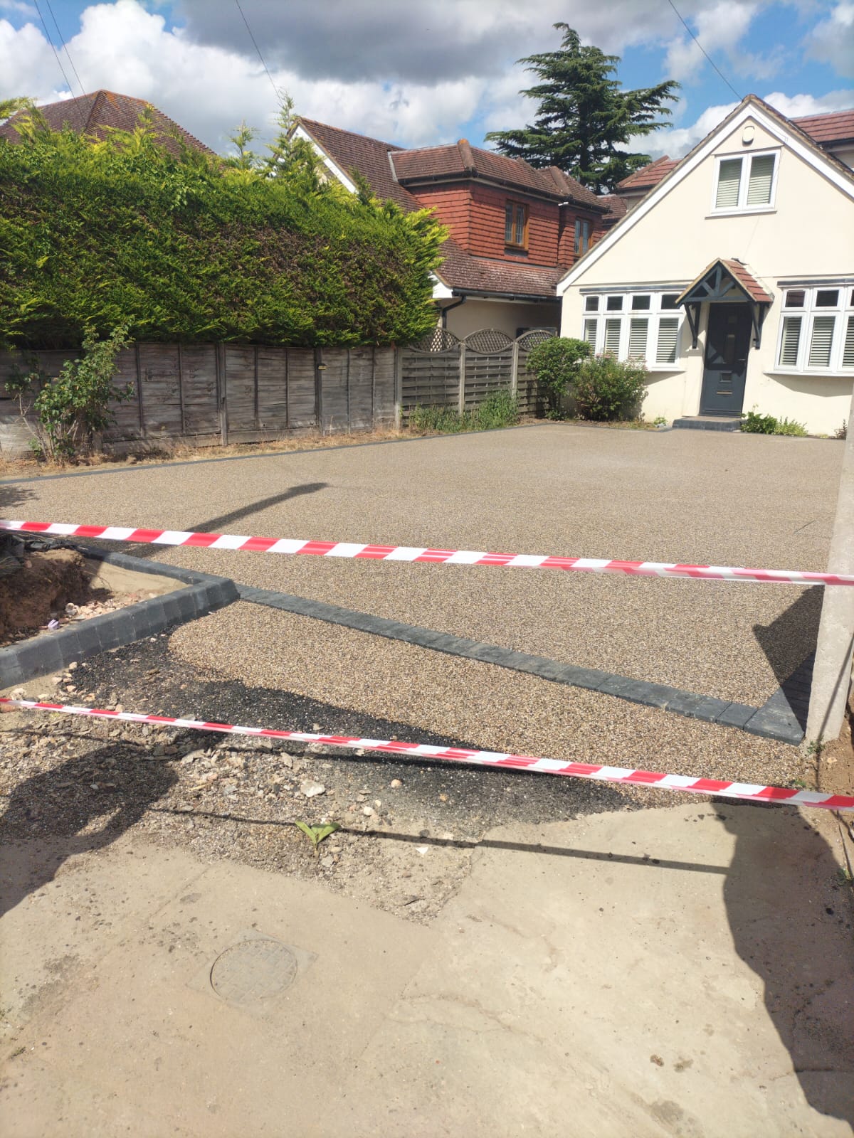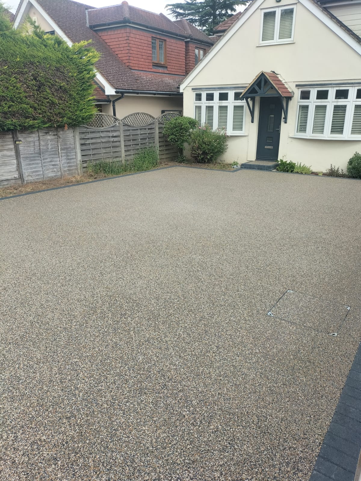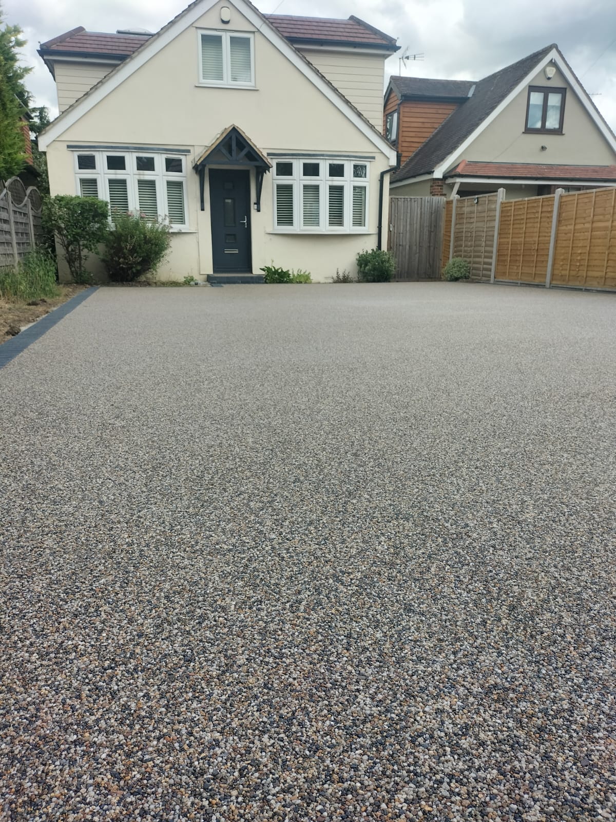 This newly completed resin-bound driveway installation showcases our dedication to combining style with practicality for residential surfacing projects. Installed at a private property in Hertfordshire, the sleek, natural stone finish perfectly complements the home’s exterior while delivering long-lasting performance. The surface is not only visually striking but also fully porous—ideal for preventing water build-up and ensuring compliance with Sustainable Urban Drainage Systems (SUDS). Its UV-stable resin helps maintain vibrant colour over time, while the anti-slip texture and weed-resistant qualities make it a smart, low-maintenance choice for homeowners.